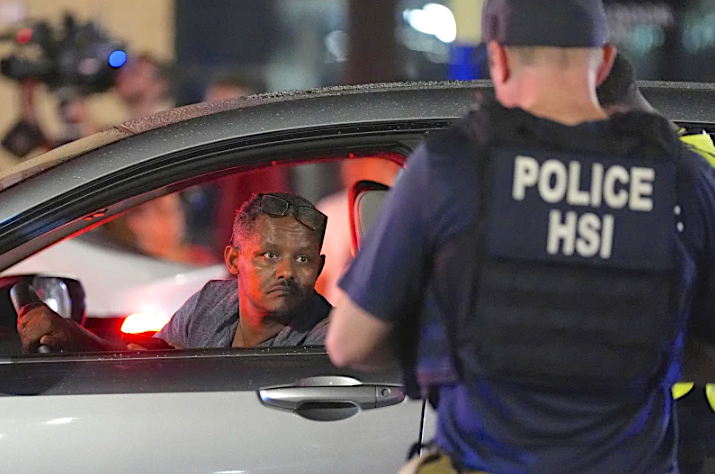 Department of Homeland Security Investigations agents join Washington Metropolitan Police Department officers as they conduct traffic checks at a checkpoint along 14th Street in northwest Washington. Photo by The Associated Press