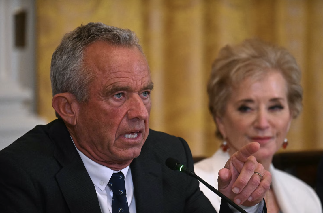 Secretary of Health and Human Services Robert F. Kennedy Jr., speaks as Secretary of Education Linda McMahon listens during a Make America Healthy Again Commission event at the White House in Washington last year. Photo by Jim Watson/AFP via Getty Images/ABC News